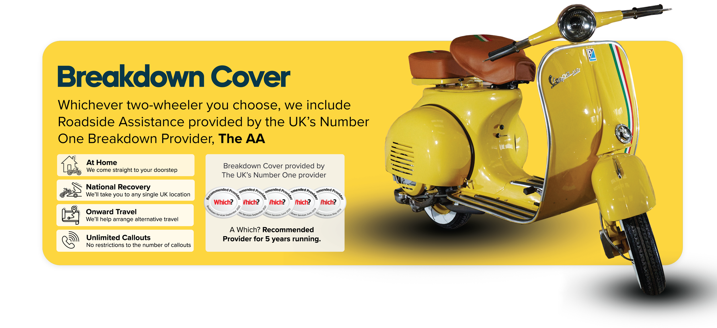 We hear this often! While standard insurance is a good safety net, RideAssure provides specialist, two-wheeler recovery. Standard tow trucks aren't always equipped for classic scooters and motorbikes. RideAssure guarantees expert handling and real peace of mind on every ride.